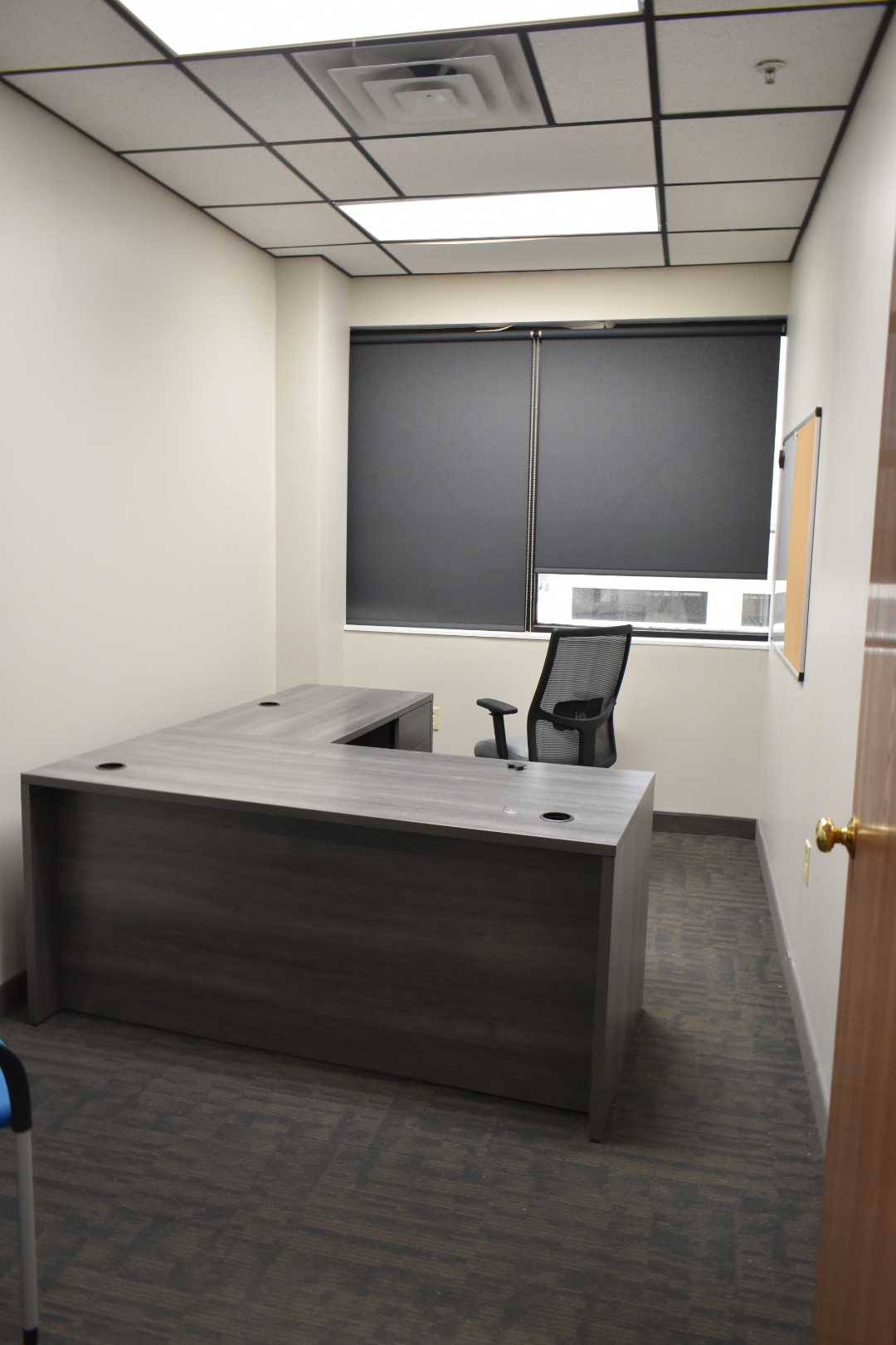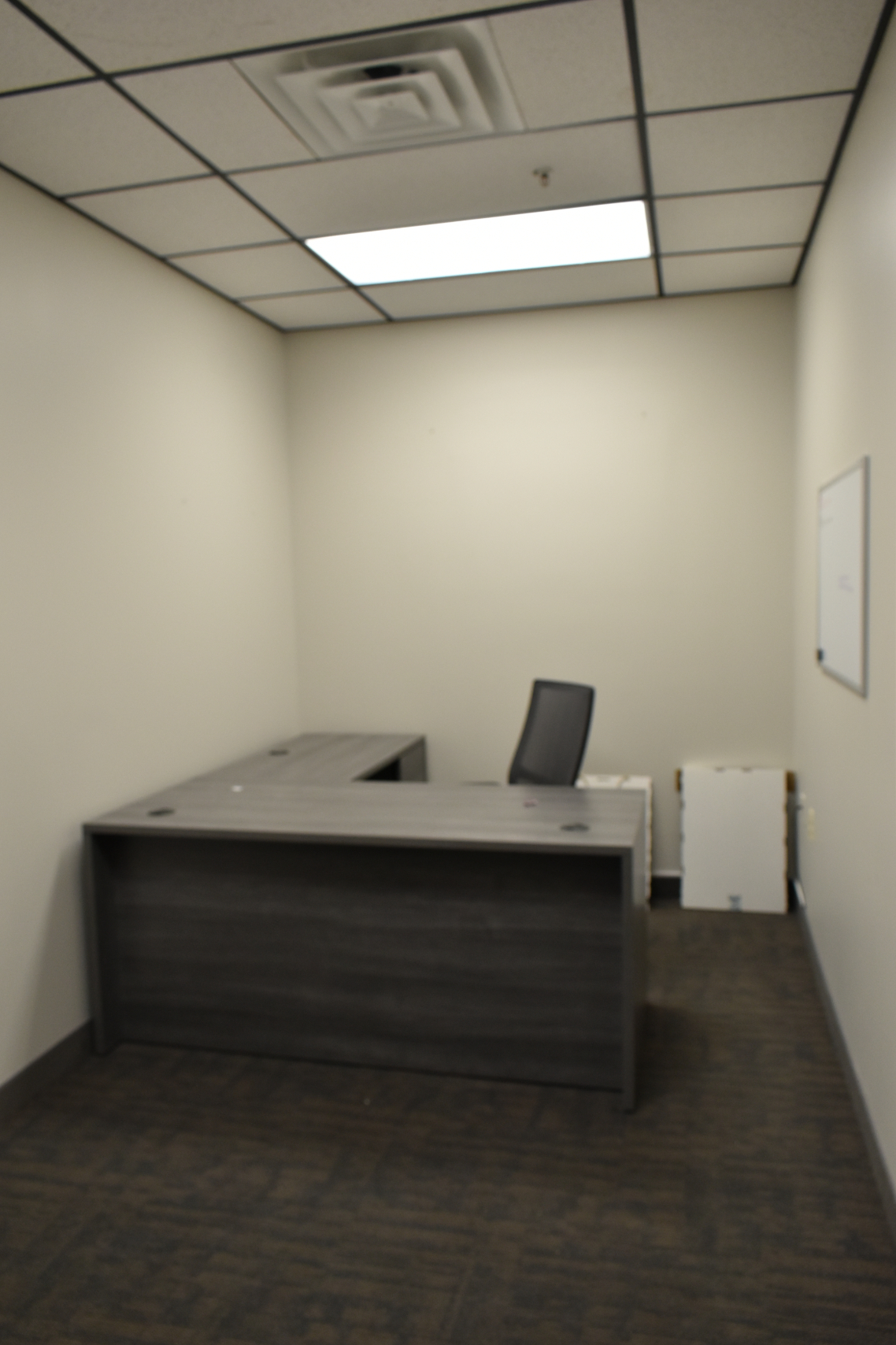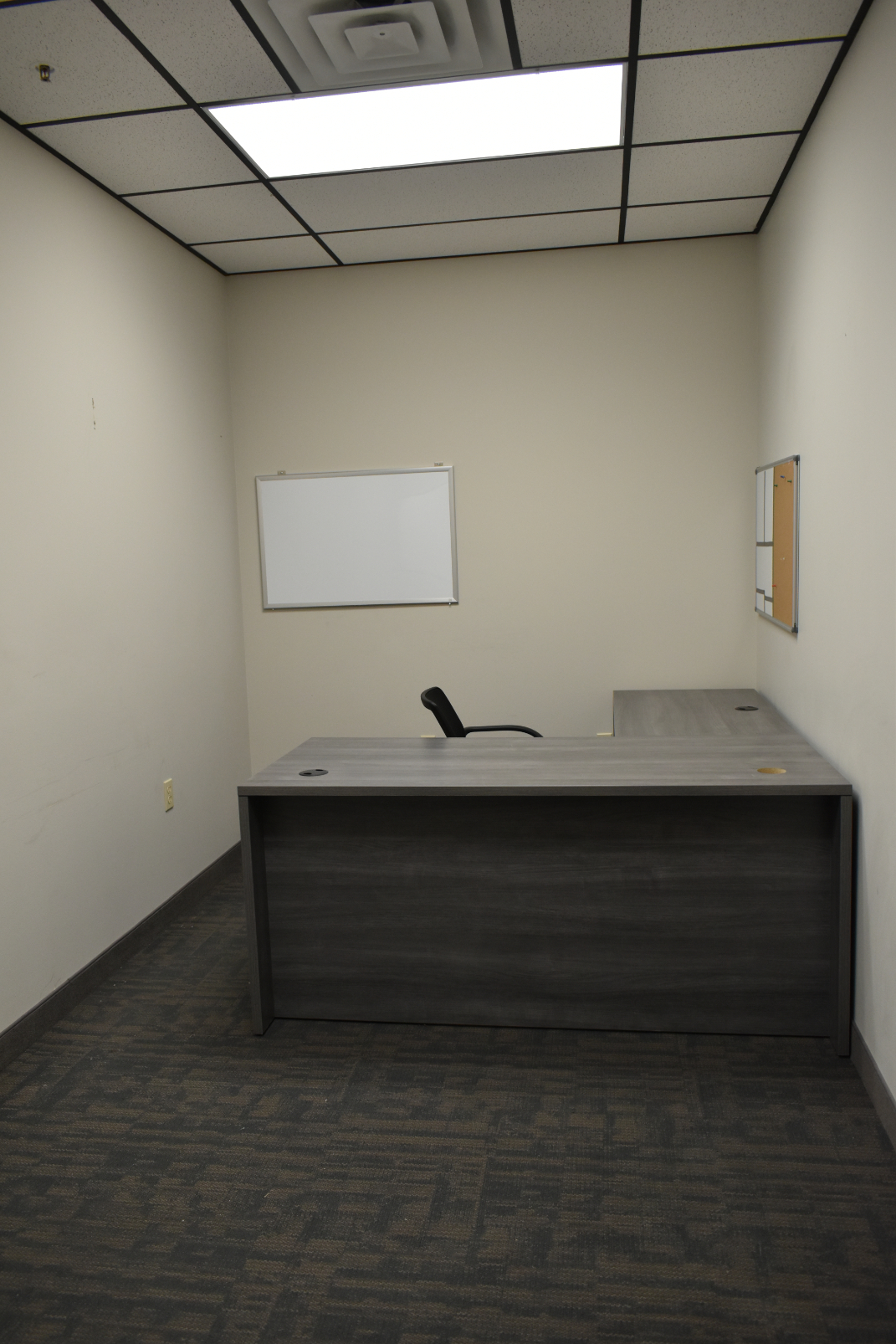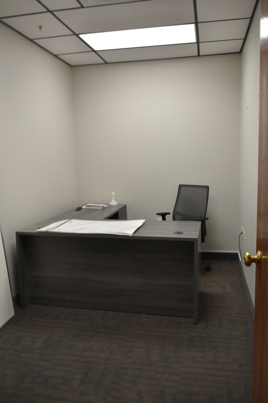 - Office Space: This is a single office that includes a shared break room and reception area. Perfect for a new entrepreneur, existing home business that needs a more professional location for customers, or a shared office for your remote employee.