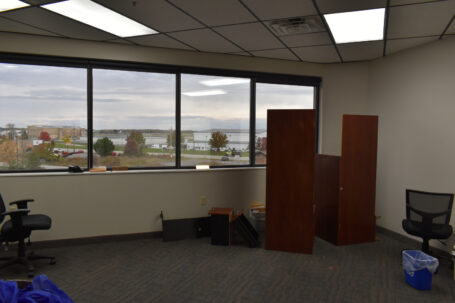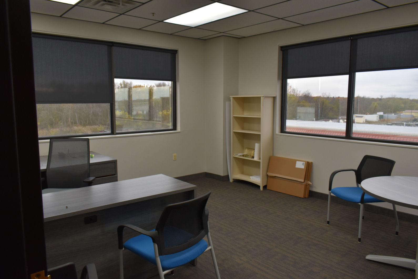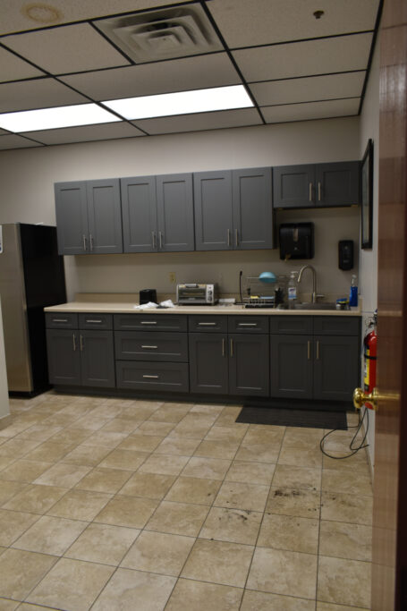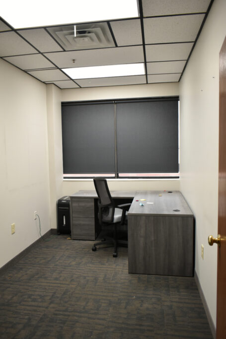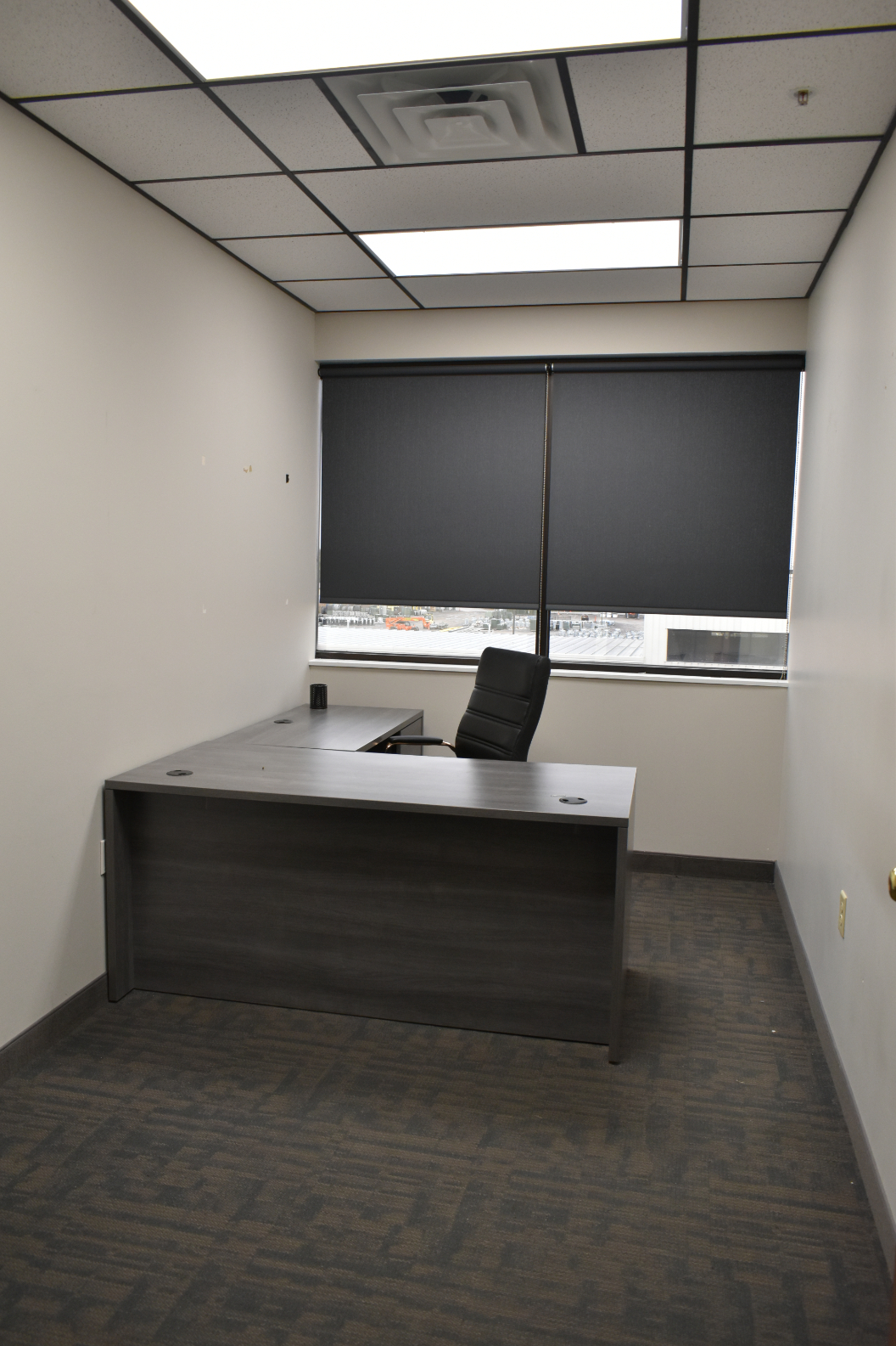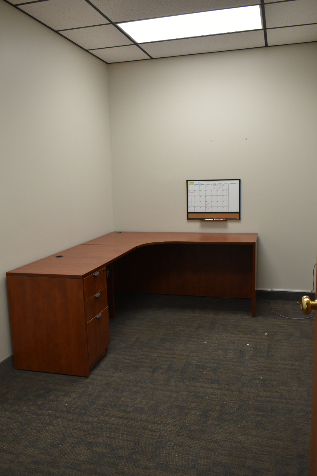 - Office Space: This is a single office that includes a shared break room and reception area. Perfect for a new entrepreneur, existing home business that needs a more professional location for customers, or a shared office for your remote employee.